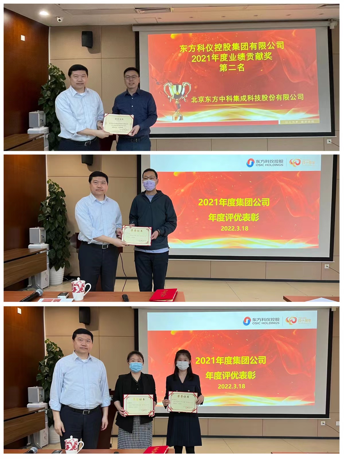??會(huì)議公布了2021年度成員企業(yè)業(yè)績(jī)貢獻(xiàn)獎(jiǎng)、創(chuàng)新發(fā)展獎(jiǎng)及2021年度集團(tuán)公司最佳服務(wù)個(gè)人獎(jiǎng)、最佳管理團(tuán)隊(duì)獎(jiǎng)評(píng)選結(jié)果。東方科學(xué)儀器上海進(jìn)出口有限公司榮獲業(yè)績(jī)貢獻(xiàn)獎(jiǎng)第一名,北京東方中科集成科技股份有限公司榮獲業(yè)績(jī)貢獻(xiàn)獎(jiǎng)第二名。集團(tuán)人力資源部徐鳴鴻、集團(tuán)辦公室栗麗敏獲得最佳服務(wù)個(gè)人獎(jiǎng),集團(tuán)信息技術(shù)部獲得最佳管理團(tuán)隊(duì)獎(jiǎng)。