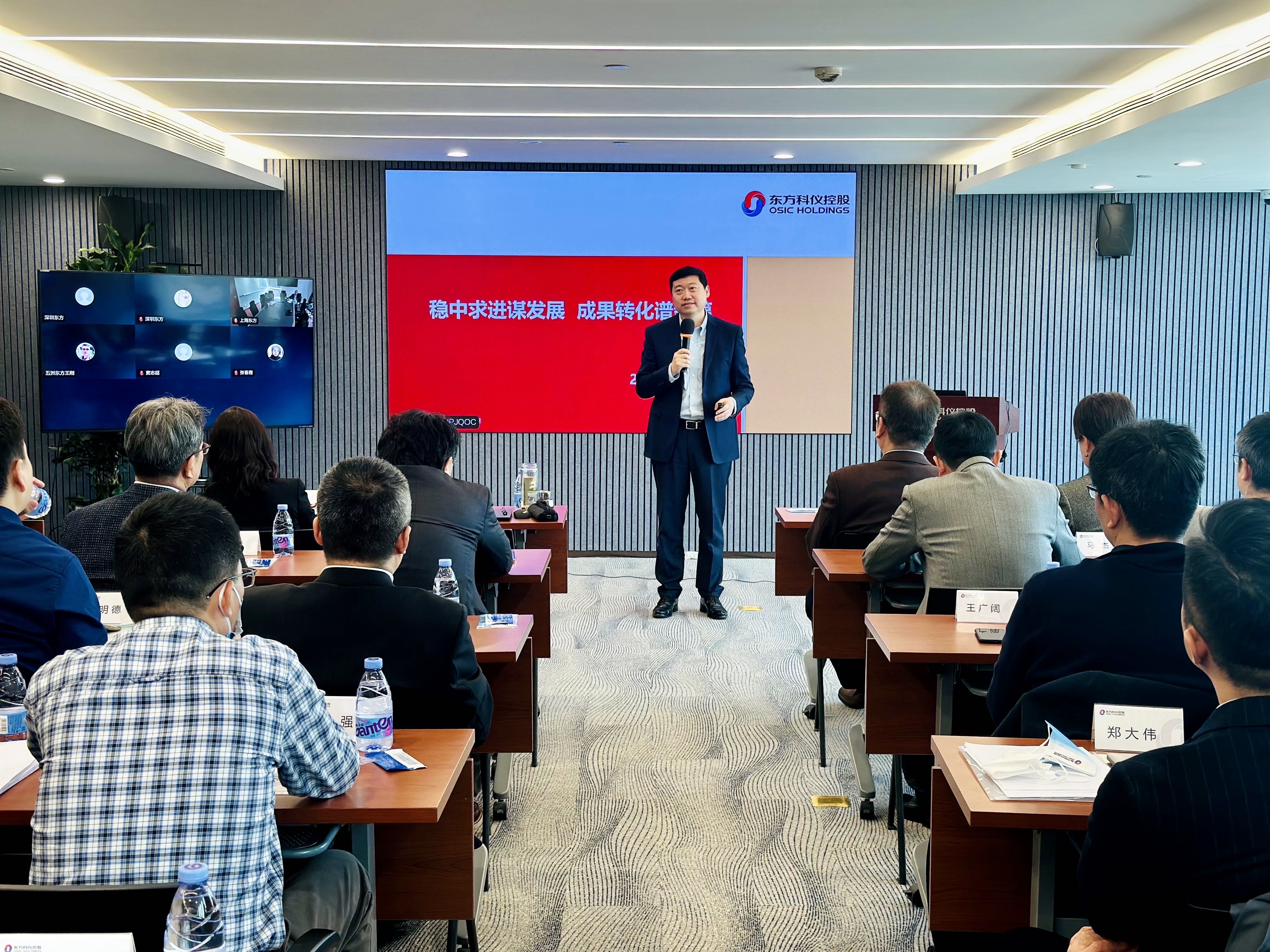 ??3月16日至3月17日,東方科儀控股集團(tuán)有限公司(以下簡(jiǎn)稱“東方科儀控股”)召開2023年度工作會(huì)議。會(huì)議圍繞 “穩(wěn)中求進(jìn)、精準(zhǔn)管控、助力轉(zhuǎn)化、人才培養(yǎng)”的集團(tuán)公司2023年度工作主線,對(duì)2022年全年工作進(jìn)行總結(jié),同時(shí)部署2023年重點(diǎn)工作。集團(tuán)公司中層及以上領(lǐng)導(dǎo)人員、各成員企業(yè)經(jīng)營(yíng)班子人員60余人通過現(xiàn)場(chǎng)主會(huì)場(chǎng)與視頻分會(huì)場(chǎng)的方式參加了本次會(huì)議。