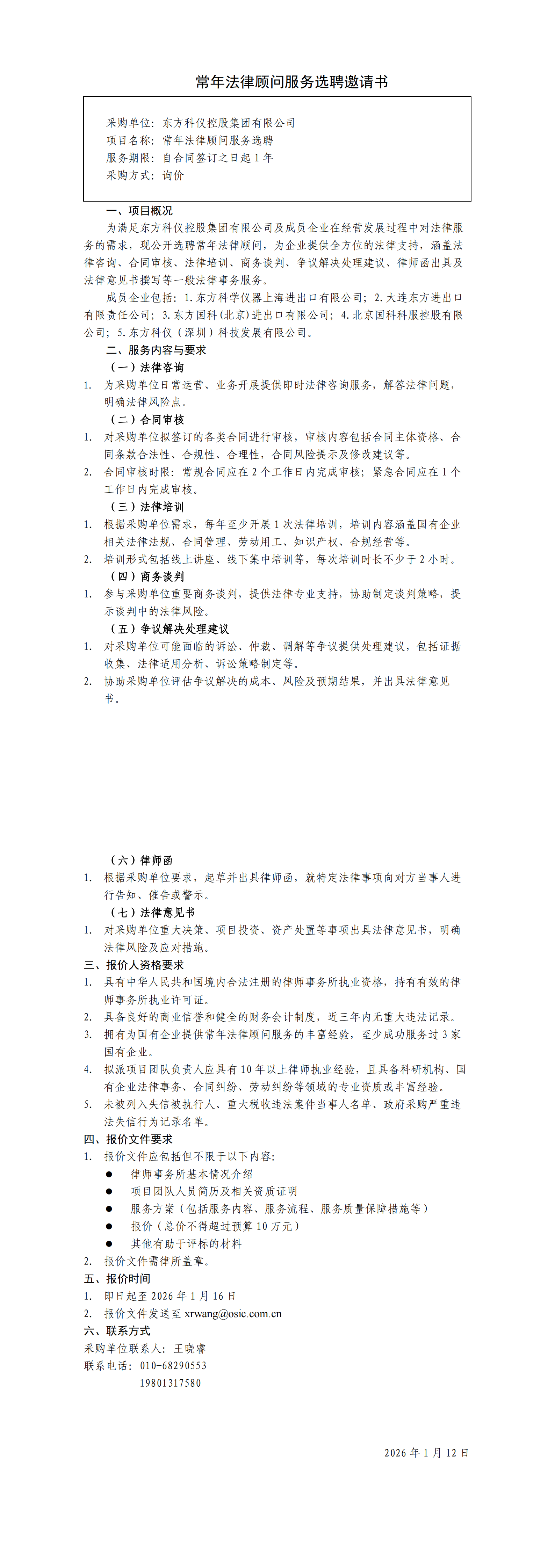 常年法律顧問(wèn)服務(wù)選聘邀請(qǐng)書(shū)