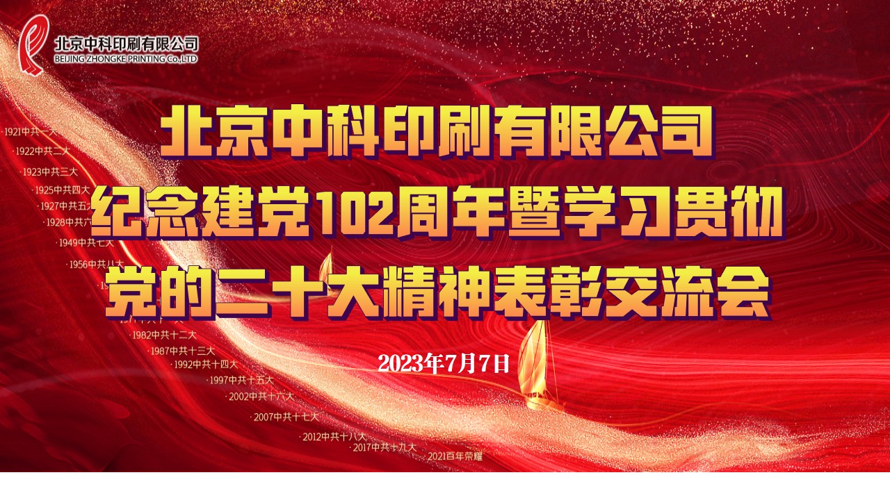 2023年7月7日上午,北京中科印刷有限公司召開紀(jì)念建黨102周年暨學(xué)習(xí)貫徹黨的二十大精神表彰交流會(huì),深入學(xué)習(xí)貫徹習(xí)近平新時(shí)代中國特色社會(huì)主義思想,總結(jié)2023...