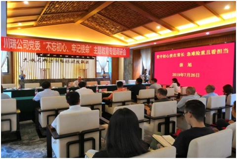 新征程綻放新夢想,新期待昭示新作為 ——川瑞公司學(xué)習(xí)傳達(dá)孫云董事長在柳江項(xiàng)目調(diào)研座談會(huì)講話精神 2019.07.23? ?7月21日,公司召開2019年半年度黨建暨紀(jì)檢監(jiān)察工作會(huì),公司黨委書記、董事長何東傳達(dá)了集團(tuán)公司黨委書記、董事長孫云同志在柳江項(xiàng)目開展“不忘初心、牢記使命”主題教育調(diào)研活動(dòng)期間的座談會(huì)講話精